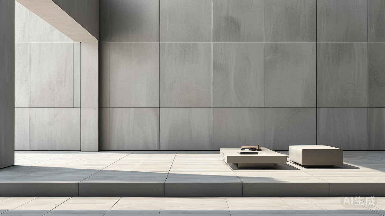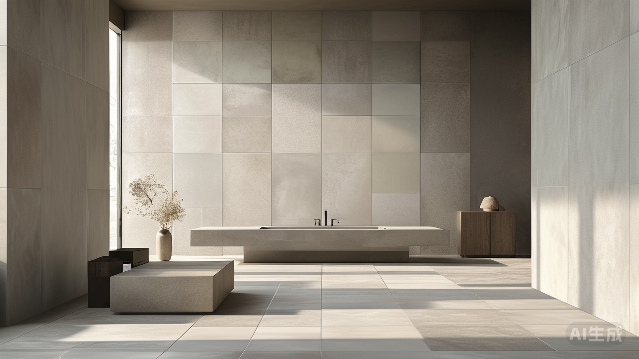 * **微水泥质感:** 具有细腻、均匀、略带手工痕迹的微水泥质感瓷砖,是打造一体化、无缝隙视觉的顶级选择。 * **素色肌理:** 选择纹理细腻、均匀、不张扬的款式。避免大颗粒、高反差的复杂纹理,它们会破坏空间的纯粹感。