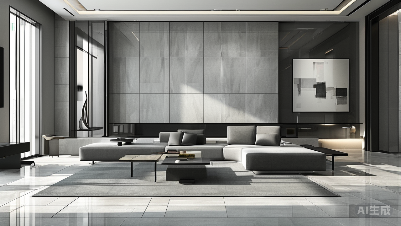 二是规格的统一与最大化。对于大平层而言,大规格瓷砖(如900x1800mm, 1200x2400mm甚至更大)是营造整体感的不二之选。大幅面的瓷砖意味着更少的缝隙,视觉上的延展性更强,能有效弱化分割感,让地面或墙面宛若一体,从而将空间的尺度感推向极致。这种一气呵成的连贯性,正是大宅风范最直观的体现。
